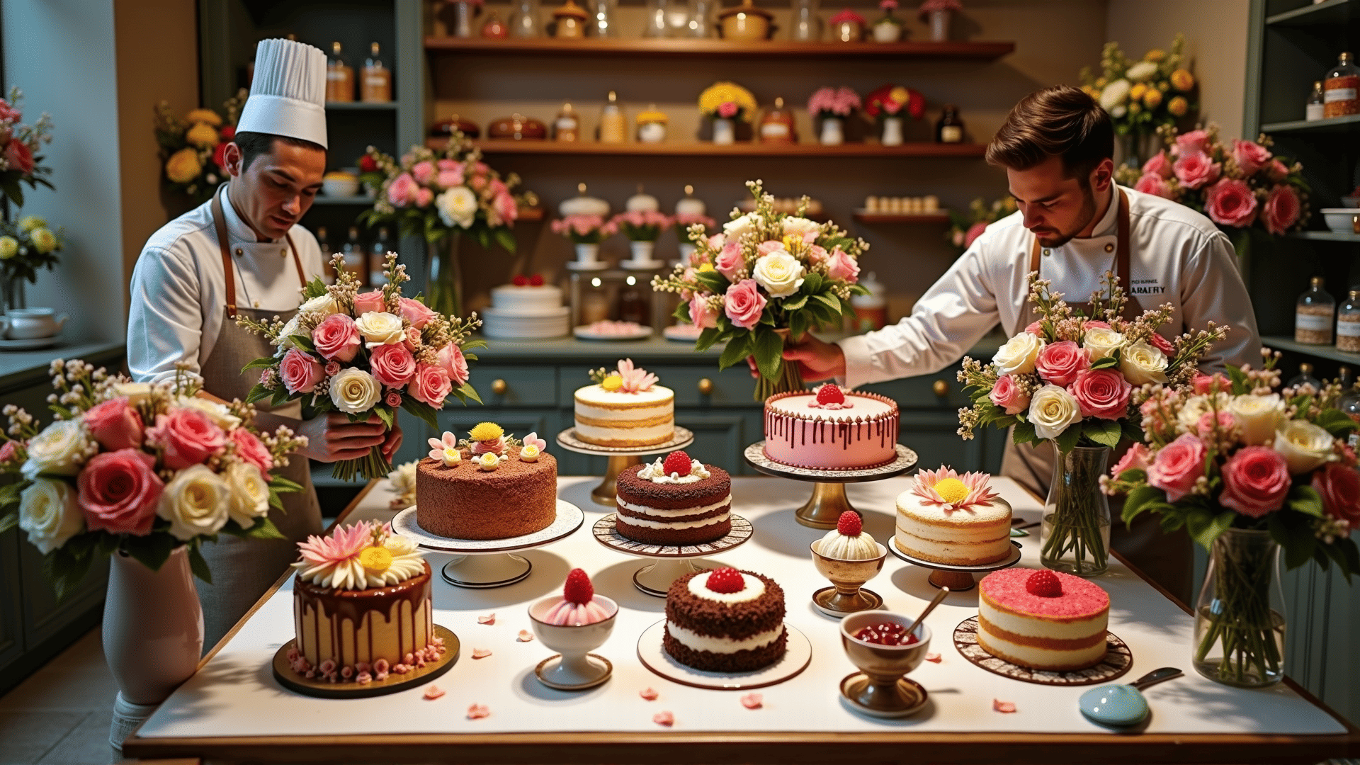 Entdecken Sie die Harmonie zwischen Blumen und süßen Köstlichkeiten.